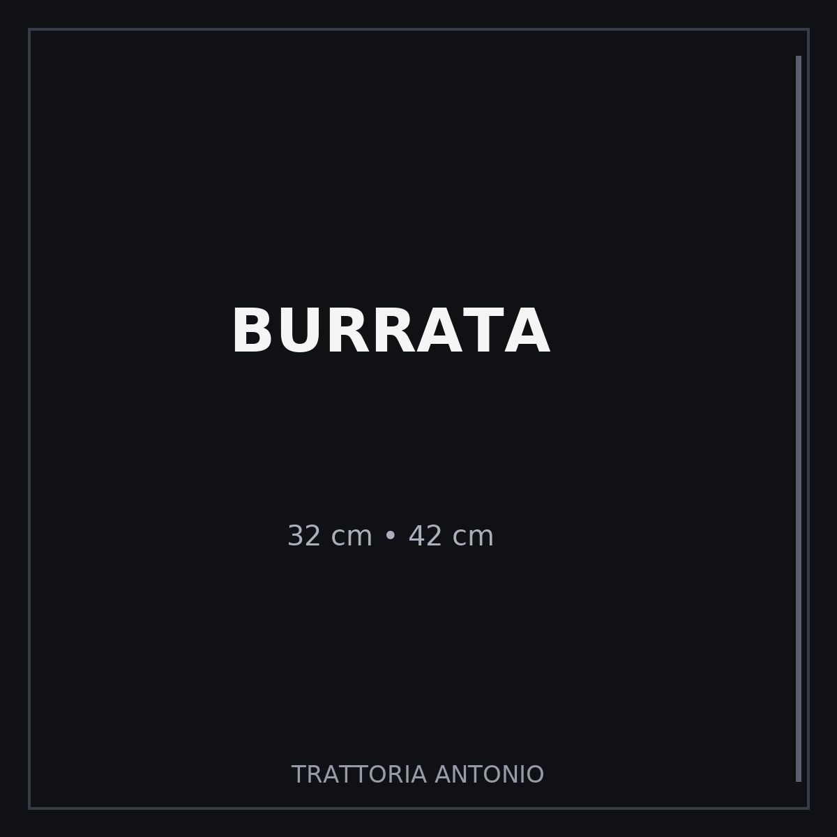 W rozmiarze 42 cm burrata serwowana po dwóch stronach pizzy. -